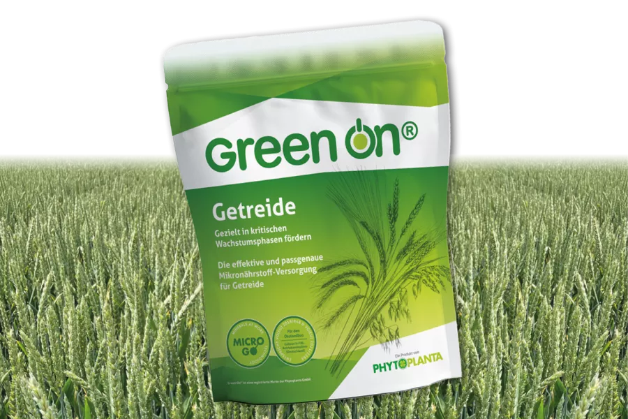 Green On® Cereals is the micronutrient foliar fertilizer for efficient plant nutrition in cereal cultivation. In our highly effective foliar fertilizer for cereals, the trace elements manganese, zinc and copper are bound as stable chelates with the amino acid glycine (MicroGo technology). This ensures that the nutrients are absorbed very quickly via the leaf and distributed in the plant in order to develop their full effect. Green On® Grain ensures an optimized supply of trace nutrients for all types of grain, and nothing is lost in the process! This is because all the ingredients of the water-soluble MicroGo chelates are fully available to the plant and help your cereal crop to exploit its full potential for higher yields.
